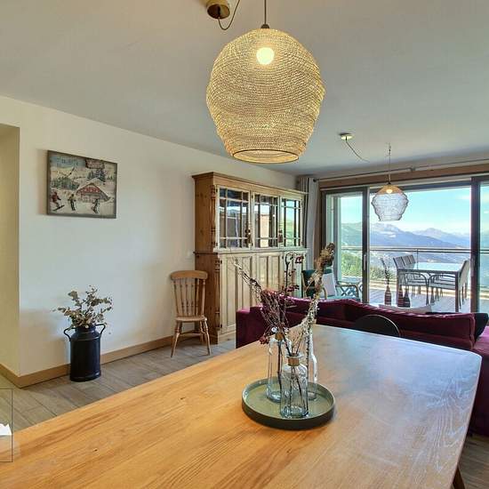 A propos de ce bien L'appartement Le Ridge 403, de typologie 2 chambres + Coin Montagne est situé au 4ème étage de la Résidence et peut accueillir jusqu'à 08 personnes. La décoration, à la fois cosy et contemporaine, met en valeur des finitions soignées et des matériaux de qualité, exclusivement Made In Europe, pour une atmosphère chaleureuse et élégante. D'une superficie de 68m2, l'appartement se compose : - D'une cuisine entièrement équipée ouverte sur un vaste séjour lumineux ; - D'une terrasse exposition Sud / Sud-Ouest avec une vue pan...