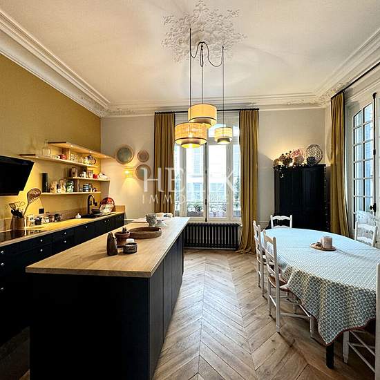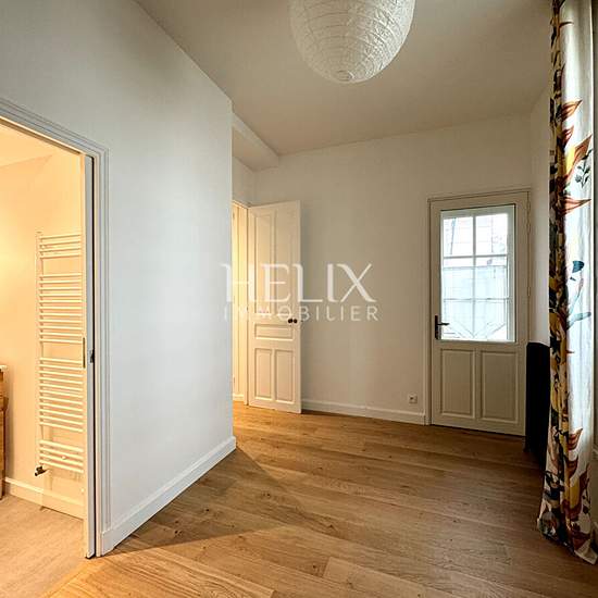Exceptionnel, dans un secteur privilégié et très recherché magnifique appartement meublé de 106, 39 M² dans un hôtel particulier. Dans un immeuble de caractère, sur cour, l'appartement au rez-de-chaussée "Comme une maison" avec un jardin d'agrément de 350 M² , clos de mur en pierre naturelle, le calme parfait dans une rue bordée d'immeubles de caractère. L'appartement se compose, une entrée, parquet point de hongrie, une belle cuisine US aménagée et équipée avec des moulures qui viennent décorer le plafond, la cuisine se prolonge à un beau s...