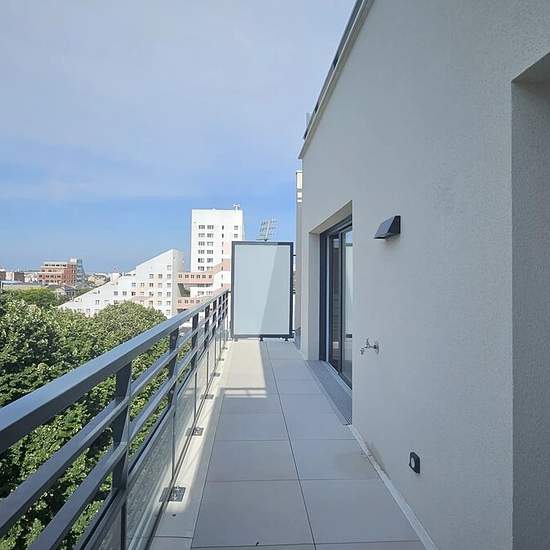 Dans une très belle résidence neuve de standing avec gardien et proposant des services innovants tels que des boites à colis connectées, nous vous proposons à la location cet appartement de 4 pièces vide avec toit terrasse. Situé au 7ème étage avec ascenseur, cet appartement de 92,20 m² se compose : d’une entrée avec placard, d’une cuisine aménagée et semi-équipée (plaques de cuisson à induction et hotte),d'un séjour donnant sur un balcon, de deux chambres spacieuses, d'une suite parentale avec placard et une salle d'eau, d’une salle de bain...