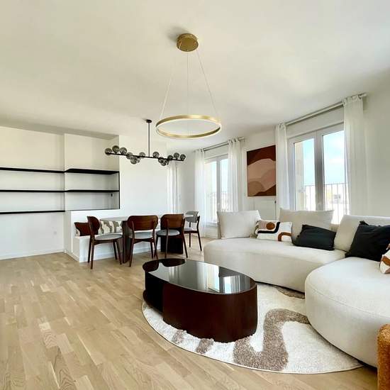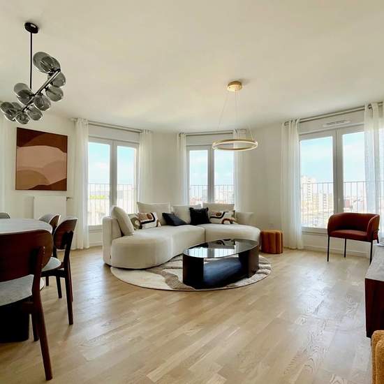 Mairie de Saint-Ouen - Vue panoramique - Terrasse de 12m² - Au pied du métro ligne 14 - Au dernier étage d'un immeuble neuf, un superbe appartement moderne composé d'un grand salon, de 3 chambres, d'une cuisine entièrement équipée, d'une lingerie, 2 salles de bains et 2 cabinet de toilette. Appartement très calme avec une grande luminosité. En sus du loyer, un parking en face de l'immeuble, 100€. Contacter le Afficher le téléphone