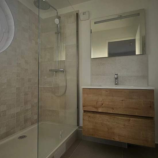 Dans une très belle résidence neuve de standing avec gardien et proposant des services innovants tels que des boites à colis connectées, nous vous proposons à la location cet appartement de 4 pièces avec terrasse. Situé au 8ème étage avec ascenseur, cet appartement de 100 m² se compose : d’une entrée avec placard, d’une cuisine aménagée et semi-équipée (plaques de cuisson à induction et hotte), d'un spacieux séjour, de deux chambres spacieuses, d'une suite parentale avec une salle d'eau, d’une salle de bains moderne équipée d'un sèche-servie...