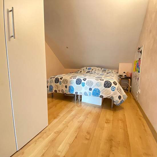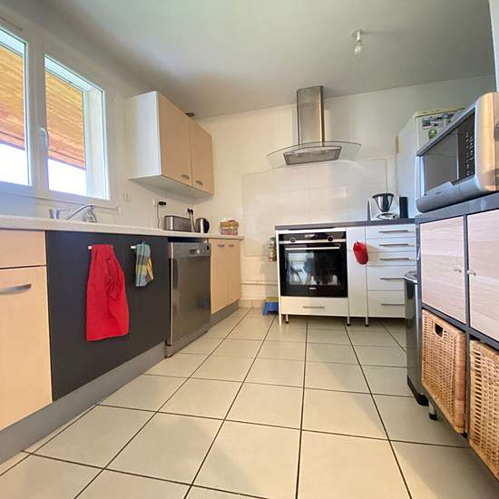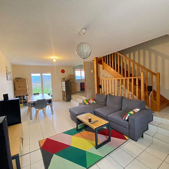 SAINT SULPICE - T4 DUPLEX à louer de 80,61m² (98m2 surface au sol) au 1er et dernier étage sans ascenseur comprenant au 1er niveau : Entrée, cuisine aménagée ouverte sur séjour, terrasse, salle de bains avec WC. Au 2nd niveau : trois chambres. Un cellier et une cave commune. Disponible le 01/01/2025. Loyer : 1018 euros + 24 euros de charges (copropriété et TOM). Honoraires : 772 euros.