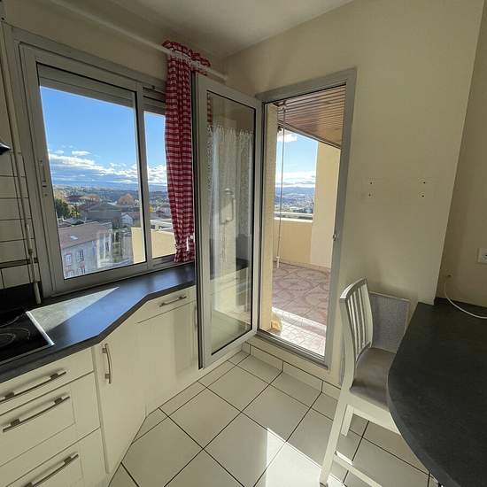 Dans Résidence calme et sécurisée au 2è étage sur 3 avec ascenseur, magnifique F4 avec terrasse et une cave. L'appartement est composé d'un hall d'entrée spacieux avec rangement, une cuisine entièrement équipée et un séjour donnant sur la terrasse avec vue sur la chaîne des Puys, 3 chambres, une salle d'eau et un wc séparé avec lave mains. Une partie du chauffage et eau compris dans les charges. Références exigées. Dossier complet demandé, Etude du dossier avant visite. Honoraires de 450 € TTC à la charge du locataire comprenant 158 € TTC po...