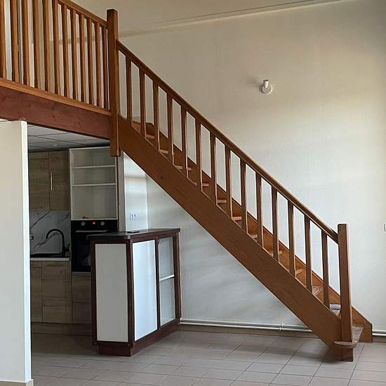 T4 DUPLEX TONNAY-CHARENTE. Appartement de 108 m² situé au 1er et dernier étage sans ascenseur. Ce bien entièrement rénové comprend : entrée avec placard, pièce de vie de 28m², cuisine aménagée neuve et équipée (plaque, hotte, four), chambre de 12m², buanderie, salle de bains et wc. A l'étage : Une mezzanine de 18,5 m², 2 chambres mansardées. Une grande cave située au rez-de-chaussée de l'immeuble. Chauffage gaz. Les contrats d'électricité, de gaz et d'eau sont à prendre par le locataire. LIBRE DE SUITE.