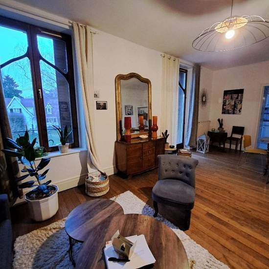 Rue du Commandant Chaudron, appartement de type F3 d'environ 90m² habitables au 2è étage. Grande entrée, cuisine équipée (hotte, plaque de cuisson, four et lave-vaisselle), vaste séjour lumineux, 2 chambres, salle de bain, wc séparés. Chauffage individuel gaz. Disponible courant mars. Travaux de rafraichissement à prévoir. Toutes nos annonces sur