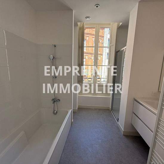 Located in the very heart of Toulouse, at 42 rue des Marchands, in a superb Toulouse-style building overlooking Place de la Trinité, this spacious T4 apartment of 106 m² is on the 2nd floor (elevator currently being installed) with a private landing. It comprises an entrance, a 32 m² living room, a separate fitted and equipped kitchen (hob and extractor hood) with laundry room, two separate toilets, a bathroom with bathtub and shower, and three bedrooms, one of which has a private shower room. Air-conditioned apartment, with all the charm of...