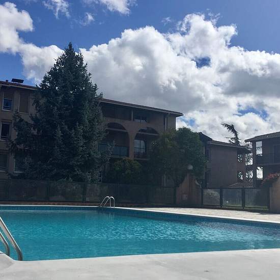 Garden-level apartment near Purpan. T5 (5-room) of 95 m² on the garden level, Purpan neighborhood, avenue des Arènes Romaines, in a gated residence with a swimming pool and green spaces. Entrance with closet, double living room opening onto the terrace and small garden, separate kitchen (fitted with upper and lower cupboards and equipped with an induction hob and extractor hood), three bedrooms with closets, a shower room, a bathroom and separate toilet. Includes two cellars and two parking spaces. Available immediately