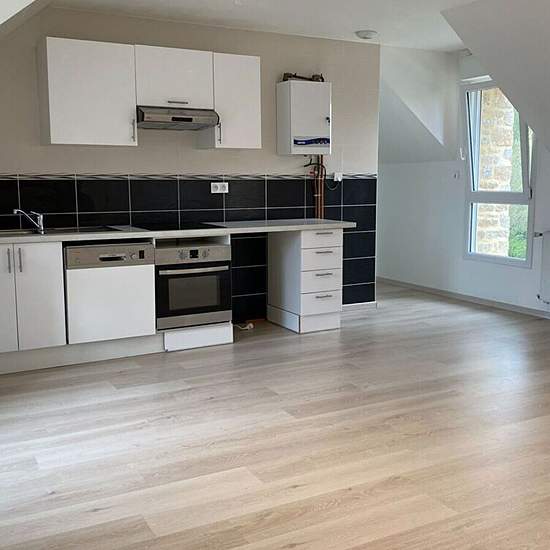 Appartement Trefflean 4 pièce(s) 64.17 m2. TREFFLEAN -Venez découvrir ce T4 de 64 m² habitables au sein d'une belle et agréable longère en pierre. L'appartement est composé d'une belle pièce de vie avec une cuisine ouverte aménagée, un couloir desservant 3 chambres toutes équipées d'un placard de rangement et une salle de bains avec WC. Il dispose d'une place de parking. Il est également à proximité d'un grand parking avec stationnement gratuit et borne de rechargement pour les voitures électriques. Venez-vous installer à seulement 15 minute...