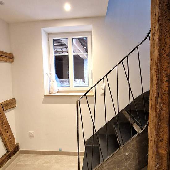Valoir Immobilier Agency and LDC Immobilier offer you an authentic Alsatian house fully renovated, elegantly combining historic charm with modern comfort. A rare property, full of character, located 3 minutes from the highway. PROPERTY DESCRIPTION From the entrance, you will be charmed by the volumes and the warm atmosphere of this carefully renovated house. - Living area: 103.70 m² (122.10 m² on the floor) - Living room with open kitchen: 44 m² - 4 rooms (3 bedrooms) On the ground floor: - Entrance with storage - Beautiful 44 m² living spac...