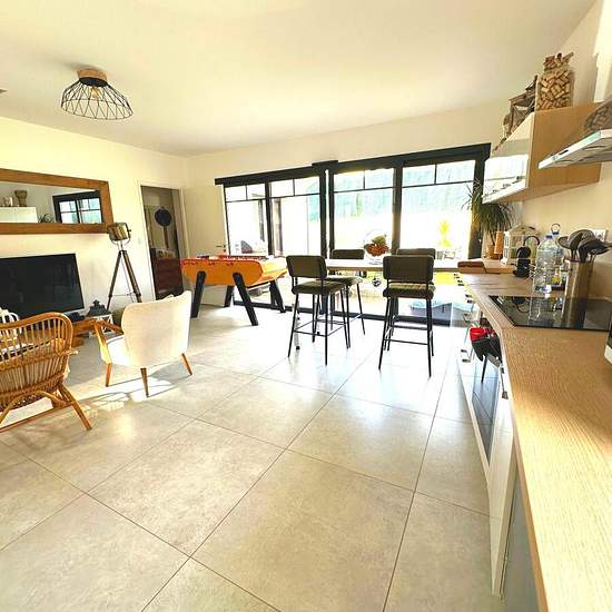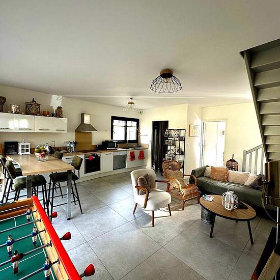 LIBRE LE 20 JANVIER Maison Contemporaine Entièrement Meublée Découvrez cette magnifique maison contemporaine, construite en 2018, offrant un espace de vie de 90,26 m², entièrement meublé et prêt à accueillir votre famille. Cette propriété récente est idéale pour ceux qui recherchent un équilibre parfait entre modernité et confort. Les quatre pièces, dont une cuisine équipée, un salon chaleureux et trois chambres confortables, offrent un cadre de vie agréable et convivial. La décoration moderne et les finitions de haute qualité ajoutent une t...