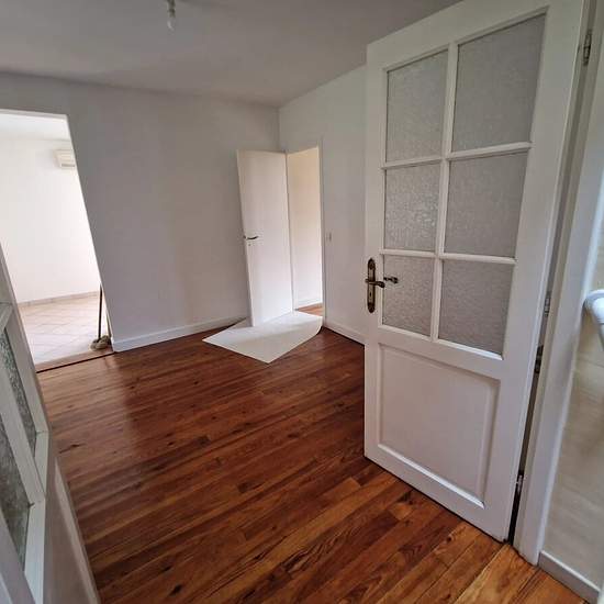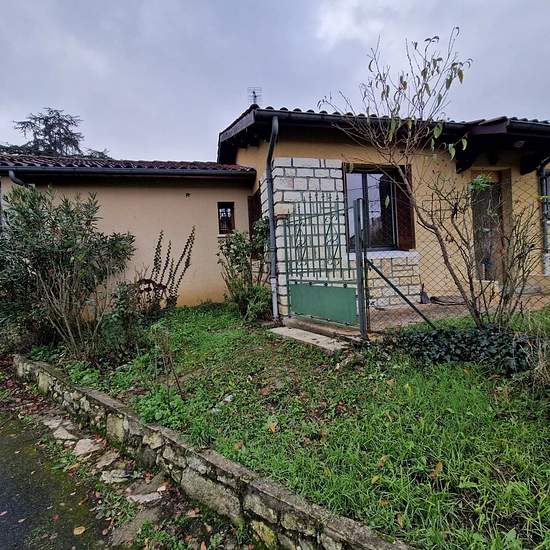 Maison de plain pied Type 4 d'environ 102m² située à deux pas du centre basse ville Cuisiné équipée avec insert et clim réversible, salon, véranda avec clim, 2 chambres, salle d'eau, wc indépendant, chaufferie. Chauffage central au fioul avec chaudière neuve. Grand jardin d'environ 3000m² avec arbres fruitiers et deux garages + atelier.