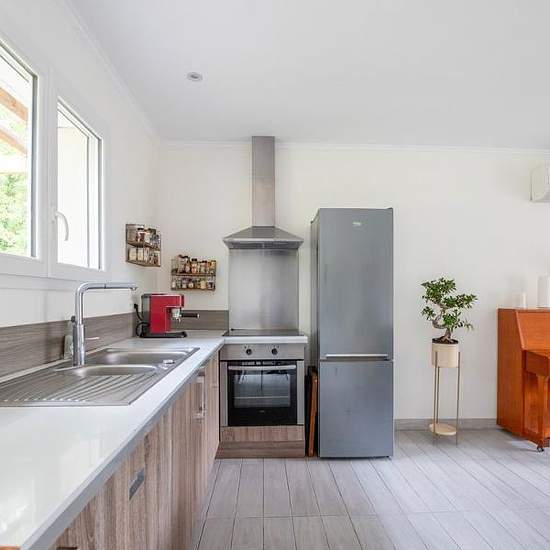 Location a l'annee, audenge, 1390 euro + charges 50 euro maison t4 de plain pied tres bon etat 84 m². Avec terrasse 38 m² + jardin 948 m² + parkings et cellier. Comprenant entree, sejour double, cuisine amenagee equipee, 3 chambres, salle de bain, wc. Proche commodites. Caution : 1 mois hc. Nous contacter ladp . Fd 210 euro - mis a jour le 06 / 12 / 25 - loyer hors charges.