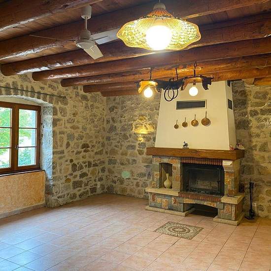 MAISON en pierres avec terrasse et jardin - MAISON en pierres avec terrasse couverte et jardin, comprenant un séjour avec insert et chauffage fuel au sol, une cuisine équipée, deux chambres, une salle d'eau, un WC; à l'étage une chambre sous combles; garage couvert sous la terrasse. Loyer de 835,00 euros par mois charges comprises dont 85,00 euros par mois de provision pour charges (soumis à la régularisation annuelle). Montant estimé des dépenses annuelles d'énergie pour un usage standard : entre 2 266 et 3 066 euros. Prix moyens des énergi...