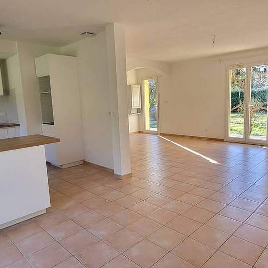 Dans un quartier très agréable et calme, non loin du village. Villa individuelle de plain-pied sur 1 700m² de terrain environ. La maison se décompose comme suit : Entrée, séjour avec cuisine ouverte, dégagement, wc, salle d'eau, chambre, chambre, chambre avec salle d'eau et wc (sany). Buanderie indépendante. La maison est en parfait état général et très lumineuse. Loyer mensuel : 1 200 € charges comprises. Remboursement de la taxe d'ordure ménagère en sus. Pour la garantie des loyers impayés, il sera demandé 3 x le montant du loyer en revenu...