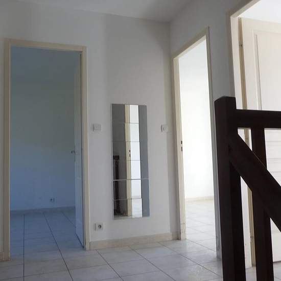 Villa sur 2 niveaux, de 87,04 m² de surface au sol totale dont 86,60 m² de surface habitable avec terrasse, jardin à l'avant de la maison et à l'arrière de la maison, garage indépendant. Au rez-de-chaussée : un séjour-salon, une cuisine ouverte aménagée de meubles bas et équipée d'une plaque de cuisson vitrocéramique, d'une hotte aspirante, d'un four. Buanderie avec ballon d'eau chaude électrique, wc indépendant. Une montée d'escaliers en bois mène au 1er étage avec palier desservant 3 chambres, la salle de bains et les toilettes. Disponible...