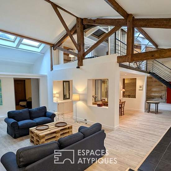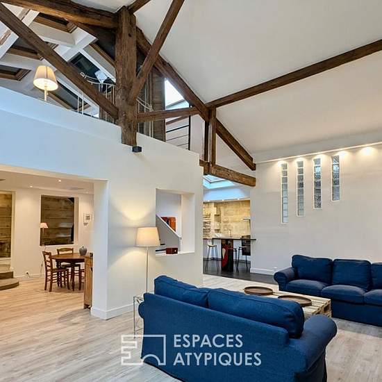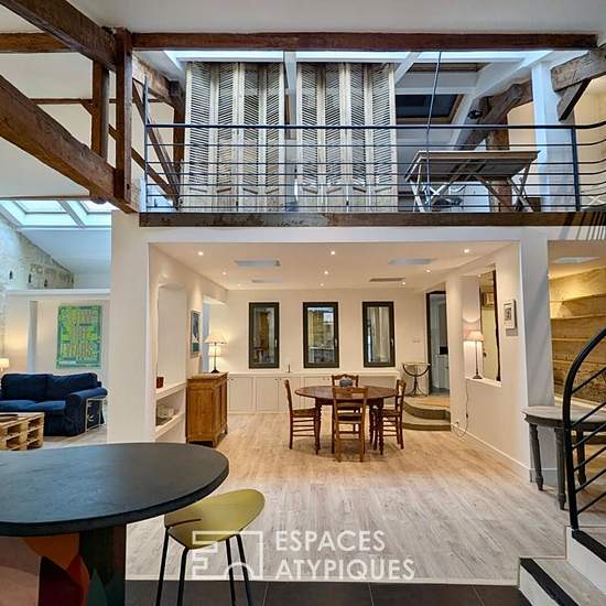 Belle maison entièrement meublée de type loft située dans le quartier prisé des Chartrons. On accède à la maison par une grande entrée permettant notamment de stocker des vélos. Elle s'ouvre ensuite sur une spacieuse et lumineuse pièce de vie, équipée d'un poêle à granulés ainsi que du chauffage au sol, avec une cuisine ouverte parfaitement aménagée. Une chambre ainsi qu'une salle d'eau moderne viennent compléter le rez-de-chaussée. A l'étage, une seconde chambre en mezzanine donne accès à une agréable terrasse sans vis-à-vis, idéale pour pr...