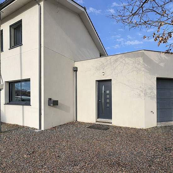 Bruges chemin de la Grave, maison à étage de 2013 MEUBLÉE ( peu de meubles) à louer. Cette maison moderne et confortable avec chauffage au sol gaz, comprend une entrée avec un placard, un WC, un grand séjour traversant qui s'ouvre sur une terrasse et le jardin, une belle cuisine toute équipée ouverte sur le séjour avec une buanderie contiguë. L'étage comprend trois belles chambres, deux chambres avec placard et une chambre parentale avec un dressing, une belle salle de bains avec une douche à l'italienne une baignoire et un meuble double vas...