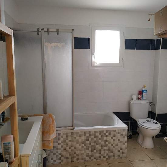 Canet d'Aude : Maison de type 4 de 90m2 r+1 libre sur trois faces. Comportant Entrée, séjour avec cuisine équipée donnant sur le terrain, wc, rangement, garage. Trois chambres et salle de bain avec wc spacieuse à l'étage. Double vitrage, chauffage .électrique, climatisation dans le séjour. Disponible de suite pour 820 euros/Mois.