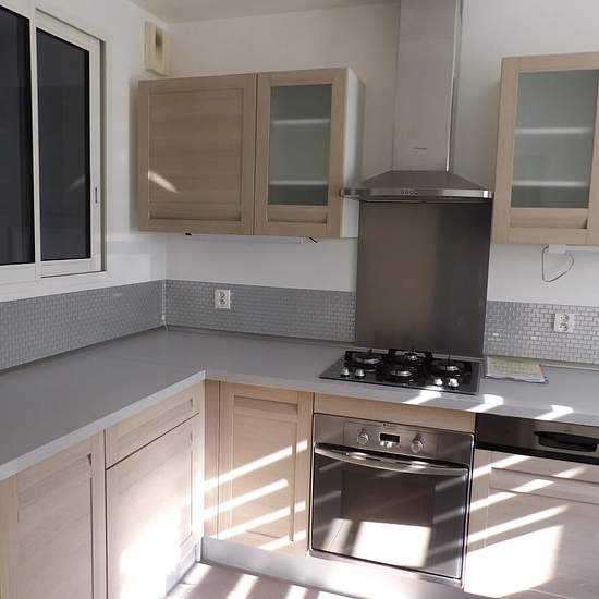Maison à louer dans la charmante commune de CESSON(77240) située en Seine et Marne au sud de Paris. Située dans une zone pavillonnaire, les commerces sont à proximité. Station CESSON gare à 2 KM MELUN à 10 minutes en voiture ou bus Cette maison se compose : Au RDC d'une entrée , de toilette avec lave mains, d'un salon / séjour de 24,83 m2 donnant sur une véranda et son jardin de 344 m2 , d'une cuisine indépendante aménagée et équipée avec passe plats (lave vaisselle, four, plaque de cuisson au gaz, hotte aspirante). A l'étage ,trois chambres...