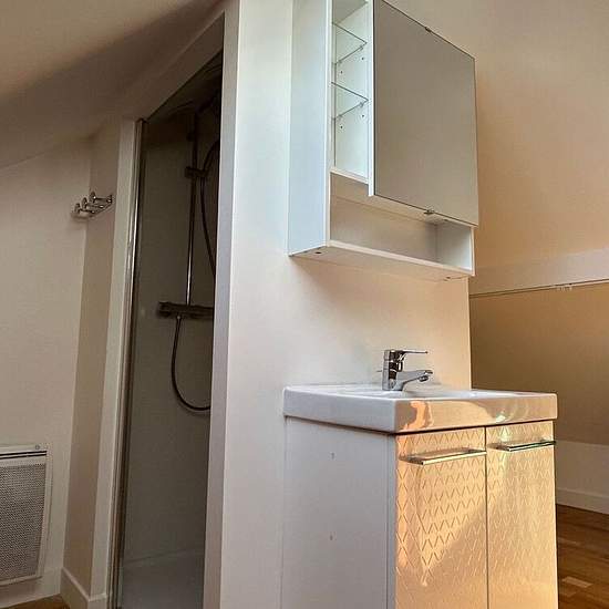 Beautiful house for rent in the town center of Chatillon. Beautiful 58.13 m2 house for rent in the town center of Chatillon — comprising an entrance, a living room, an open and equipped kitchen, a toilet, a staircase leading to two bedrooms and a bathroom, and a second staircase leading to a master bedroom with a sloping ceiling with a shower and a toilet. A 21 m2 terrace