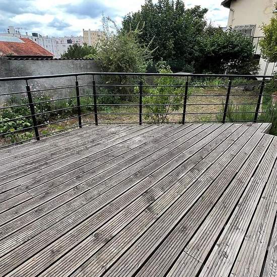 ANATOLE FARNCE/CARTOUCHERIE - Secteur de la Cartoucherie - Maison de135m², de type F5 sur deux niveaux, composée de : - au rez-de-chaussée : hall d'entrée avec placard - chaufferie/buanderie (avec machine-à-laver) - cuisine semi-équipée (lave-vaisselle - four - plaque de cuisson - hotte - réfrigérateur/congélateur) ouverte sur grand séjour avec terrasse donnant sur le jardin clos - salle d'eau avec W.C. - à l'étage : mezzanine/bureau - quatre chambres dont trois mansardées - salle de bains avec baignoire, douche et W.C. Cave et garage. Chauf...