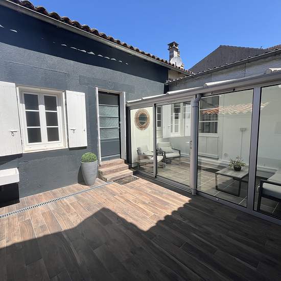 Nous vous proposons la location d'une villa F3 bénéficiant d'une charmante terrasse de belle profondeur à Cognac. L'intérieur comporte un espace cuisine, un coin salon de 16m2 et un espace nuit comprenant 2 chambres avec salle d'eau privative chacune. Sa superficie intérieure habitable est d'à peu près 72m2. La maison a été construit en 1900, le lieu est chargé d'histoire. Tranquillité assurée grâce aux fenêtres à double vitrage. À l'extérieur, vous disposerez d'une terrasse de 16m2 et une cave. Le loyer avec le propriétaire est de 865 euros...