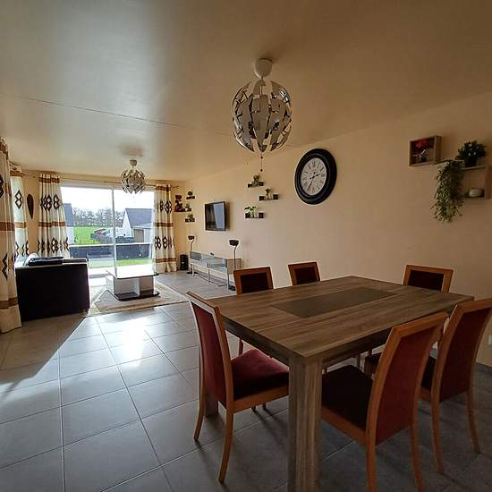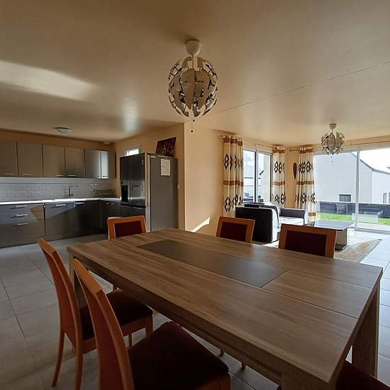 L'agence PROXIMMO vous propose cette superbe maison de 2023, entièrement meublée, pensée pour offrir un confort de vie optimal et une installation immédiate, sans compromis. Dès l'entrée, vous serez séduit par une pièce de vie lumineuse et harmonieuse, intégrant une cuisine aménagée et équipée de qualité, ouverte sur l'espace séjour. Le rez-de-chaussée dispose également d'un WC, d'une buanderie fonctionnelle et d'une véritable suite parentale avec salle d'eau privative, idéale pour une vie de plain-pied. À l'étage, un palier dessert trois be...