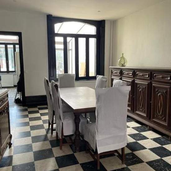 Grande maison en triplex proche du centre - Produit d'exception ! Maison de 180m² en triplex proche du centre ville. Au rez de chaussée, grand salon séjour, cuisine équipée, véranda lumineuse, WC et accès au jardin. Au 1er étage, deux chambres, deux salles de bain, WC Au 2ème étage, deux chambres attenantes ainsi qu'un bureau. Cave, jardin avec possibilité de rentrer les voitures. Loyer de 1 250,00 euros par mois charges comprises Les honoraires charge locataire sont de 1 200,00 euros ( soit 6,67 euros/m² ) dont 300,00 euros pour état des...
