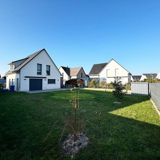Découvrez cette magnifique maison contemporaine de 130 m², construite en 2020, alliant luxe et modernité. Située sur un terrain de 539 m², cette propriété de grand standing vous offre un cadre de vie exceptionnel. Au rez-de-chaussée, vous serez séduit par une cuisine américaine équipée, ouverte sur un spacieux salon-séjour baigné de lumière grâce à ses grandes ouvertures en PVC à double vitrage. La vue sur la verdure environnante et l'exposition sud-est vous garantiront des moments de détente inoubliables. À l'étage, vous trouverez trois cha...