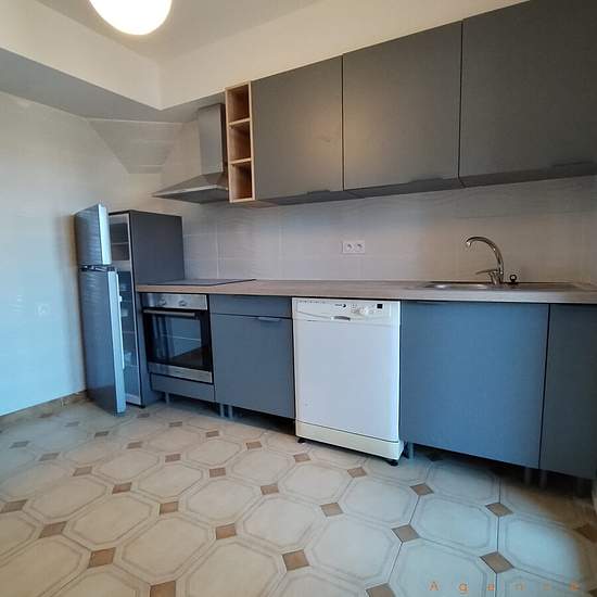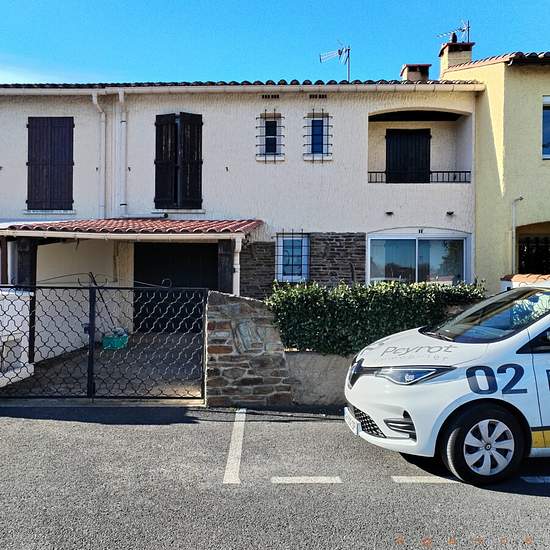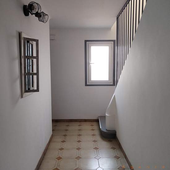 ELNE - Maison deux faces rénové Maison deux faces entièrement rénovée comprenant au rez-de-chaussée : un jardinet à l'avant, une loggia, une entrée, une cuisine indépendante aménagée et équipée (plaque de cuisson, hotte, four et frigo), un double séjour, une cour semi-ouverte à l'arrière et un garage. Au 1er étage : quatre chambres dont un balcon, une salle d'eau et un wc indépendant. Fenêtres PVC Double vitrage, Climatisation réversible gainable. Loyer : 1100.00 ? dont 50.00? de charges Dépôt de garantie : 1050.00 ? Honoraires de location :...