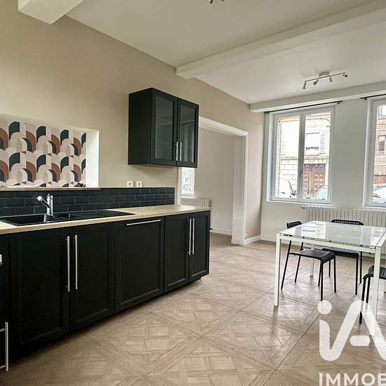 Iad France - Armelle Lecuyer vous propose : Maison de ville entièrement rénovée, située en plein coeur d'Etrépagny donc proche de toutes les commodités. Au rez-de-chaussée, l'entrée avec placard dessert : - la pièce de vie de 42 m² très lumineuse avec sa double exposition et comprenant la cuisine aménagée / équipée (10 m²) ouverte sur la salle à manger (10 m²) et le salon (22 m²) donnant sur la terrasse, - l'espace buanderie avec wc indépendant, - l'accès au 1er étage. Au 1er étage : un grand palier lumineux dessert 3 chambres (11,5 - 12,5 -...