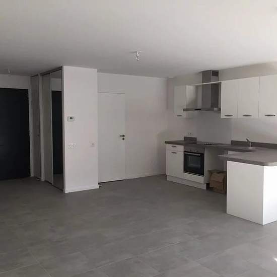 Eysines limite Le Haillan ,Disponible à partir du 9/11/2015. ,Maison plain pied, de construction BBC, neuve, de 102m². ,Entrée avec penderie, salon/séjour, cuisine aménagée, cellier/buanderie, ,3 chambres dont une parentale, salle de bains et wc. ,Garage. Terrain.
