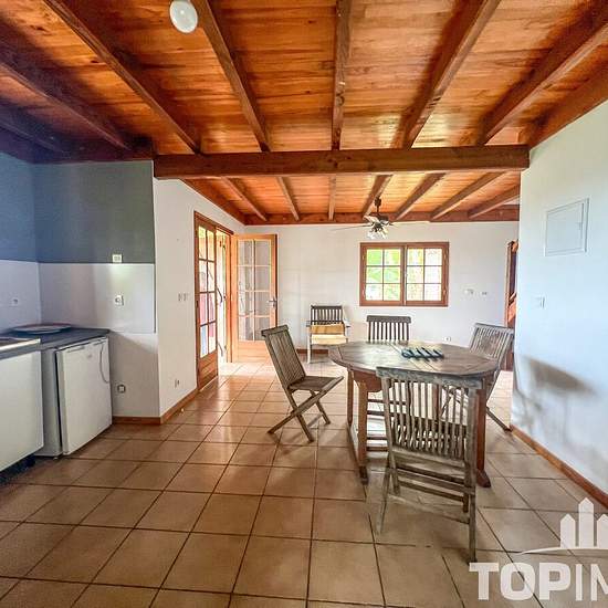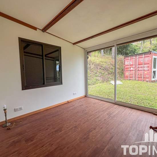 Chalet F3/F4 à Farino - Disponible de suite ! L'agence TOP IMMO vous propose à la location, niché au cœur de 6 hectares de terrain, un chalet F3/F4 idéal pour les amoureux de la nature ! Le rez-de-chaussée comprend un séjour lumineux avec brasseur d'air et accès à une terrasse couverte avec vue panoramique sur les montagnes et la mer au loin. Une cuisine aménagée, un salon distinct, une chambre de 10m² avec baie vitrée donnant accès au jardin ainsi qu'une salle d'eau rénovée avec douche à l'italienne, vasque & WC. Adjacente, une buanderie pr...