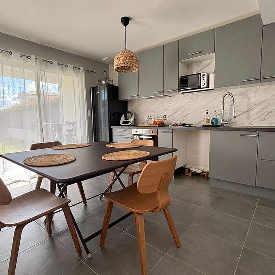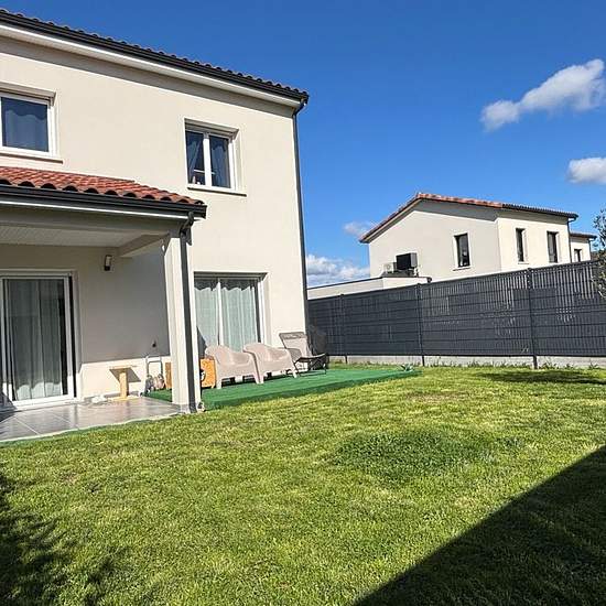Maison À Louer. Gragnague – Située dans une impasse au calme, à proximité immédiate du centre du village et de ses commerces, venez découvrir cette villa neuve de type 4 d’environ 90 m², avec garage, édifiée sur une parcelle d’environ 300 m² avec terrasse couverte. Elle se compose au rez-de-chaussée d’une entrée avec WC séparé et buanderie, d’un vaste séjour lumineux avec cuisine ouverte aménagée et équipée, donnant accès à la terrasse. À l’étage, un dégagement dessert trois chambres avec rangements, une salle de bains et un second WC indé...