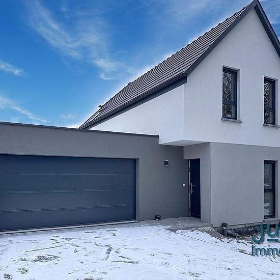 HAGUENAU, Rue Kléber, Maison neuve - 1 ère occupation après construction ! Très belle maison contemporaine de 103m2 habitables sur un terrain de 3,82 ares clos (en cours d'aménagement). Elle dispose d'une entrée, d'une cuisine fonctionnelle équipée ouverte sur une agréable pièce de vie accès terrasse et jardin, d'une suite parentale avec salle d'eau attenante, d'un wc séparé et d'un accès au garage avec buanderie ainsi que d'un espace bureau-détente, de deux lumineuses chambres et d'une salle de bains avec baignoire, douche et wc à l'étage. ...