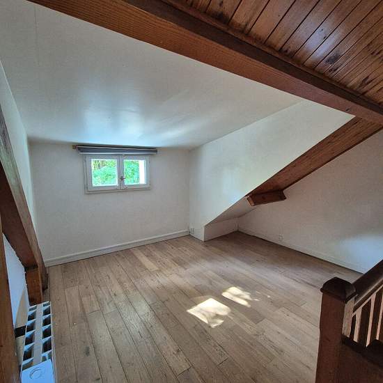 Nous vous proposons cette maison avec jardin à la location comprenant : Une entrée sur cuisine aménagée et équipée, un séjour avec cheminée, une chambre et une salle de bains avec wc. A l'étage : grand palier, deux chambres et une salle de douches avec wc. La maison dispose d'un sous-sol avec une buanderie et un garage. Disponible courant octobre.