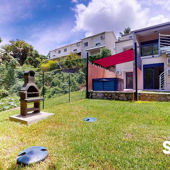 Etang Salé - Route des Canots - 5 mn du centre ville - 112 m d'altitude - Surface totale 167m²Louez cette maison de ville moderne située dans un écrin de verdure. Elle dispose d'une cuisine ouverte sur le séjour et la spacieuse varangue qui donne accès au rez de jardin au niveau inférieur. Le hall d'entrée de la maison permet de bénéficier d'un espace de rangement à aménager au gré de vos besoins. Les chambres au niveau inférieur sont toutes orientées vers le jardin et la suite parentale est située à proximité du jacuzzi. Cet espace de déten...