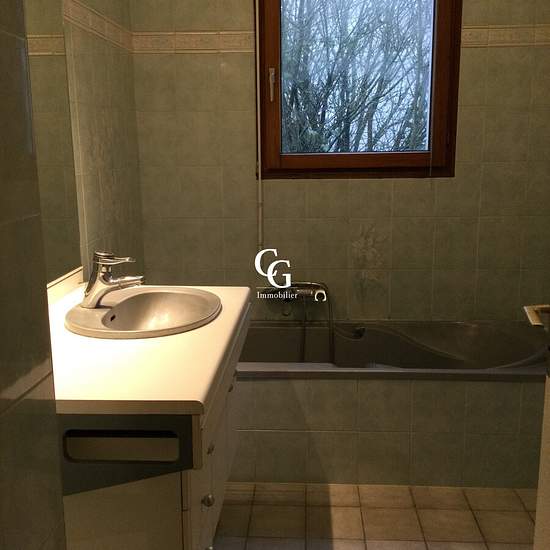 LA BAULE-ESCOUBLAC, route de Quesquello. Le Cabinet Guémené vous présente à la location une maison T4 d'une surface habitable de 119 m² comprenant une entrée, une pièce de vie de 37 m² avec cheminée, donnant sur une véranda de 17 m², une cuisine indépendante aménagée et équipée d'une hotte, trois chambres dont deux avec placard, une salle de bains, et deux WC séparés. La maison comprend également un garage double et une buanderie en sous-sol, un grand grenier aménagé sous combles, et un jardin arboré à l'avant comme à l'arrière. Chauffage et...
