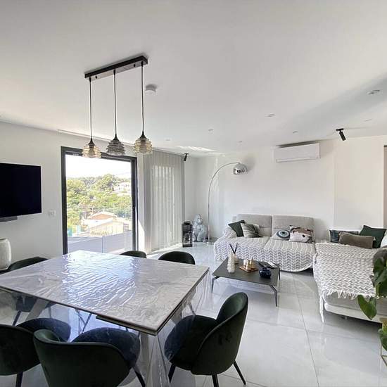A propos de ce bien Découvrez cette magnifique maison individuelle de standing, construite en 2022, offrant une vue imprenable sur la mer. Entièrement meublée et en excellent état, cette propriété de 111,83 m² habitables est un véritable havre de paix. Au rez-de-chaussée, vous trouverez un spacieux séjour de 39 m² baigné de lumière, une cuisine américaine aménagée et équipée, ainsi qu'une salle de bains et un WC indépendant. À l'étage, trois chambres confortables et une salle d'eau vous attendent. Profitez des deux terrasses parfaites pour ...