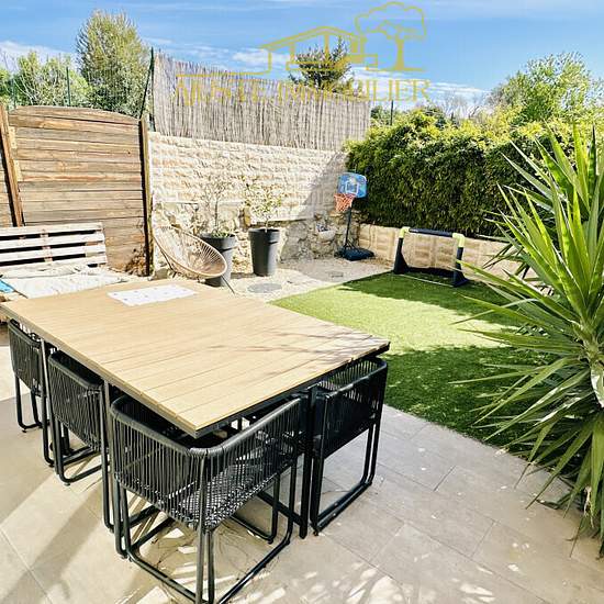 Votre agence Ajuste Immobilier vous propose à la location une jolie maison meublée en R+1 idéalement située sur la commune de la Fare-les-Oliviers. D'une superficie de 73m² loi carrez cette maison mitoyenne est composée au rez-de-chaussée, d'un séjour avec cuisine ouverte, d'un WC séparé, d'une buanderie et d'un garage. A l'étage, le coin nuit se compose de 3 chambres et d'une salle d'eau avec WC. Pour plus de confort, une climatisation réversible est installée afin de refroidir ou chauffer les différents espaces. Fenêtres PVC en double vitr...