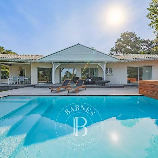 L'agence BARNES Bassin d'Arcachon vous présente la Villa Blanca, une villa de charme entièrement rénovée, idéalement située au Pyla-sur-Mer. Dans un domaine privé, à seulement 600 mètres des plages, restaurants et commerces, elle bénéficie d'un environnement calme et verdoyant. Sa vue panoramique sur le Bassin d'Arcachon et son cadre soigné en font une adresse rare pour des vacances au Pyla. La pièce de vie comprend un séjour lumineux avec coin repas, ouvert sur l'extérieur. La cuisine, séparée, aménagée et équipée, s'intègre naturellement à...