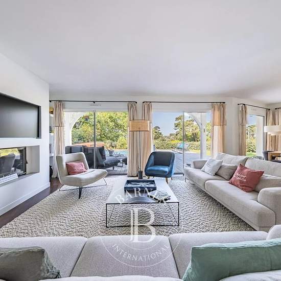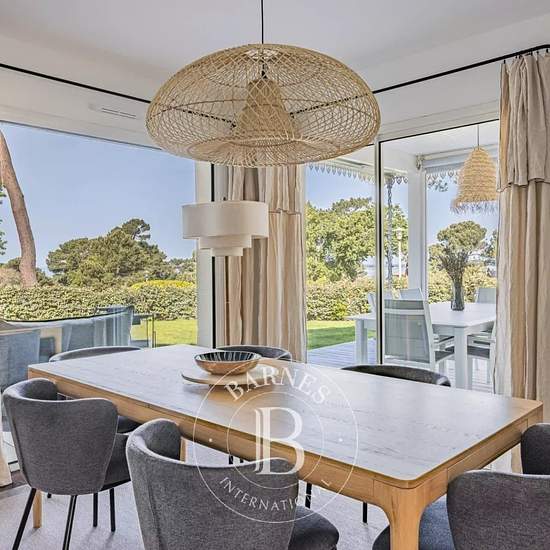 L'agence BARNES Bassin d'Arcachon vous présente la Villa Blanca, une villa de charme entièrement rénovée, idéalement située au Pyla-sur-Mer. Dans un domaine privé, à seulement 600 mètres des plages, restaurants et commerces, elle bénéficie d'un environnement calme et verdoyant. Sa vue panoramique sur le Bassin d'Arcachon et son cadre soigné en font une adresse rare pour des vacances au Pyla. La pièce de vie comprend un séjour lumineux avec coin repas, ouvert sur l'extérieur. La cuisine, séparée, aménagée et équipée, s'intègre naturellement à...