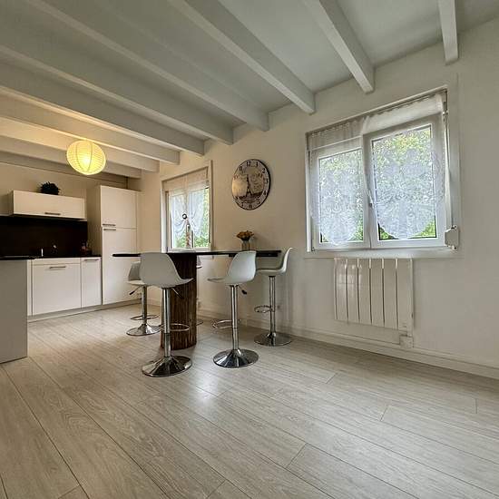 Maison Mitoyenne Rénovée à Louer à Landser. Située dans la paisible commune de Landser, cette maison mitoyenne rénovée sur trois niveaux vous offre confort et modernité. Caractéristiques : Rez-de-chaussée : Une entrée spacieuse avec un garage couvert (pour 1 voiture) et un lavabo dans la cave. 1er étage : Grande pièce à vivre avec une cuisine ouverte sur le salon-séjour, donnant accès à une terrasse, idéale pour profiter de l'extérieur. 2e étage : 3 chambres lumineuses, un WC indépendant, et une salle de bain moderne avec douche à l'italienn...