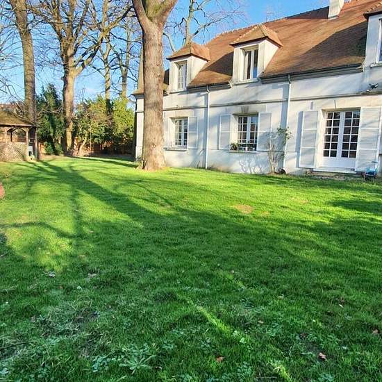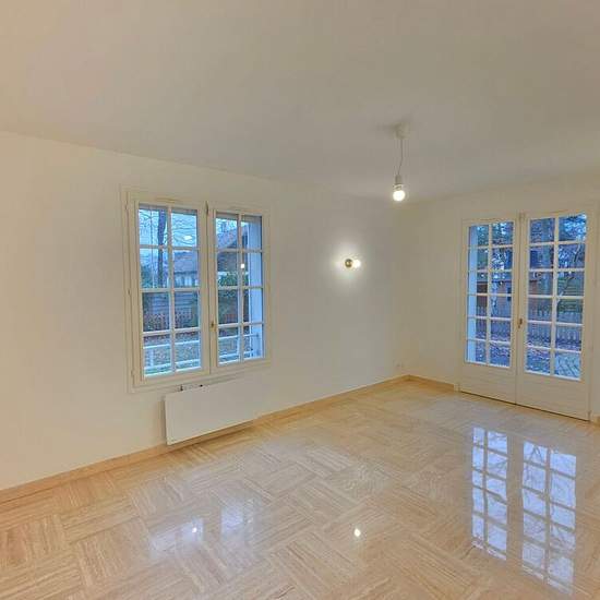 House for Rent. LE VESINET. Located 10 minutes from Parc des Ibis, 20 minutes on foot from the RER, close to shops and schools, this magnificent 1986 pavilion, fully renovated and offered unfurnished, comprises on the ground floor an independent fully equipped kitchen, dining room, cathedral-ceiling living room opening onto a terrace, and a library/bedroom. Upstairs are three bedrooms including a master suite, a bathroom and a mezzanine. The whole sits on a full basement and on a plot of approximately 900 m² with two garden sheds and a gazeb...