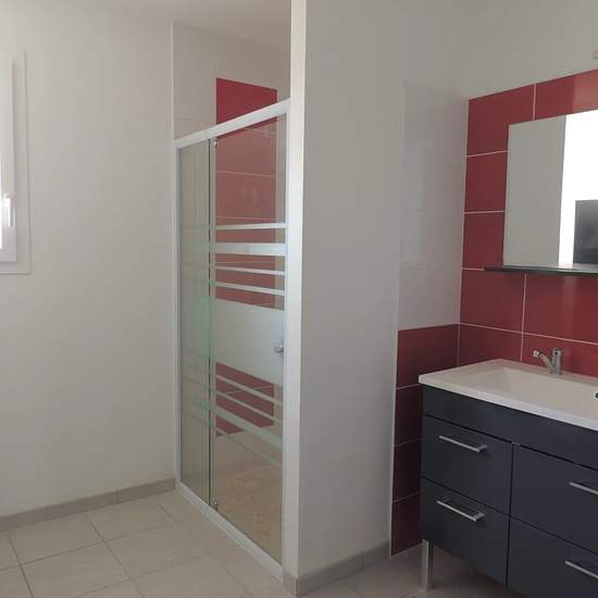 A 5 min d'Auch Maison récente de plain pied Type 4 d'environ 95m²habitables Grande pièce de vie avec cuisine américaine équipée, cellier buanderie attenant, 3 chambres avec placards, salle d'eau, wc indépendant. Chauffage central avec pompe à chaleur + Climatisation réversible. Garage attenant Jardin clôturé d'environ 1000m². Libre mi janvier
