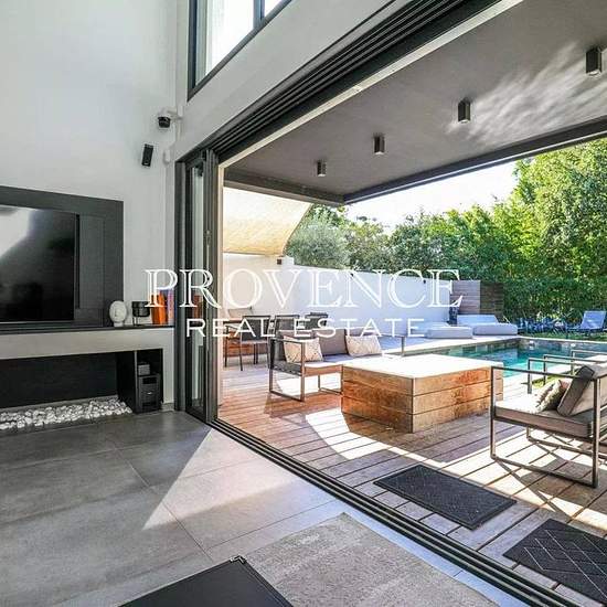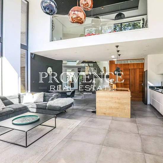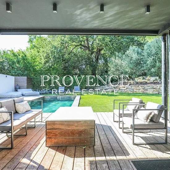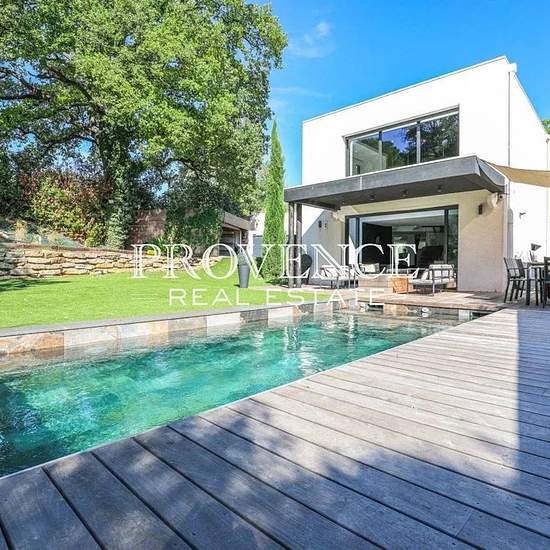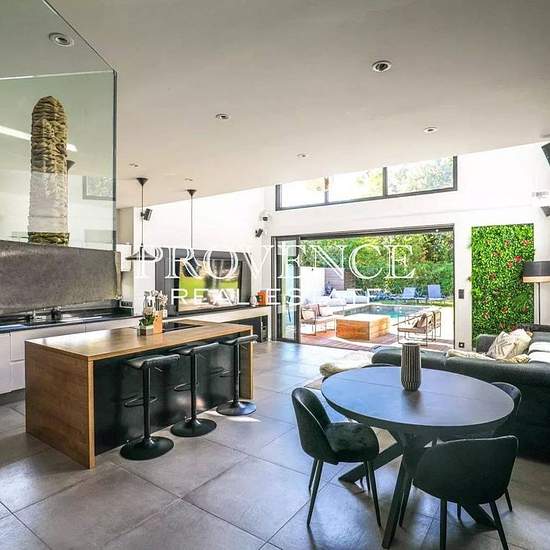LOCATION MEUBLEE d'une très belle villa contemporaine d'environ 160 m² située dans un lieu calme et à l'abri des regards. Sa distribution optimisée vous séduira par son bel espace de vie plein sud avec cuisine US entièrement équipée ouverts par de larges baies à galandage sur le jardin paysagé et la piscine, une suite parentale avec salle d'eau et WC qui offrent un espace intime et fonctionnel, deux autres chambres avec rangements, une salle de bains, un vaste open-space permettant une utilisation spécifique en fonction de vos besoins (salle...