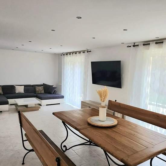 A Mézy sur Seine, dans une rue calme et ensoleillée, si situe cette maison indépendante de 105m2, avec terrasse et jardin exposé plein sud, complètement refaite à neuf. Sur deux étages, elle se situe comme tel : une entrée, avec une chambre, suivi d'un double séjour donnant sur la terrasse, et une grande cuisine ouverte. A l'étage, la chambre parentale avec dressing, la chambre pour enfant et une grande salle de bain avec double vasque. Au sous sol, un grand espace de 60m2 aménageable pour salle de jeux et buanderie. La maison dispose d'un g...