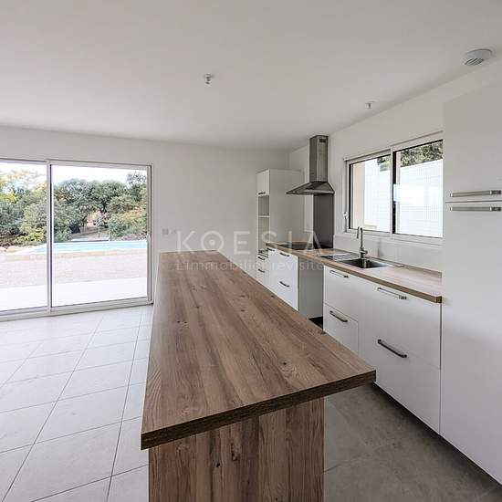Dans le village de la Boissière, Maison neuve avec piscine et vue dominante sur la garrigue – cadre calme et verdoyant Découvrez cette villa neuve de 111 m², située dans un environnement calme et verdoyant, sur un grand terrain paysager de 1 600 m², sans aucun vis-à-vis. Cette maison non meublée et climatisée (gainable dans toutes les pièces) offre de belles prestations et un cadre de vie confortable. Elle se compose de : Un vaste séjour lumineux ouvrant sur le jardin et la piscine, Une cuisine moderne entièrement équipée, Trois chambres spa...