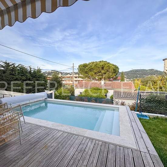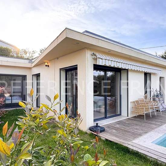 12-month rental (available now) or 10-month rental (from September 1, 2025 to June 30, 2026). - 12-month price: €3,800/month. - 10-month price: €3,300/month. Civil lease for a secondary residence or company accommodation (not for a primary residence). Full payment in advance. In the municipality of Le Cannet. Near Mougins (international schools) and bordering Cannes and the upper part of Boulevard Carnot. Beautiful new, modern, furnished single-storey house of approximately 110 m². Air conditioning (reversible). High-quality materials. On a ...