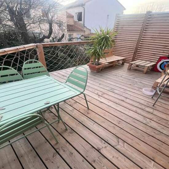 Narbonne EDF: Townhouse free on 2 sides consisting of a large living room opening onto an 18m terrace, 2 bedrooms, and a bathroom with WC, a master suite with bathtub and shower WC, and a 10m cellar. Modern with character in a highly sought-after neighborhood. A real favorite!